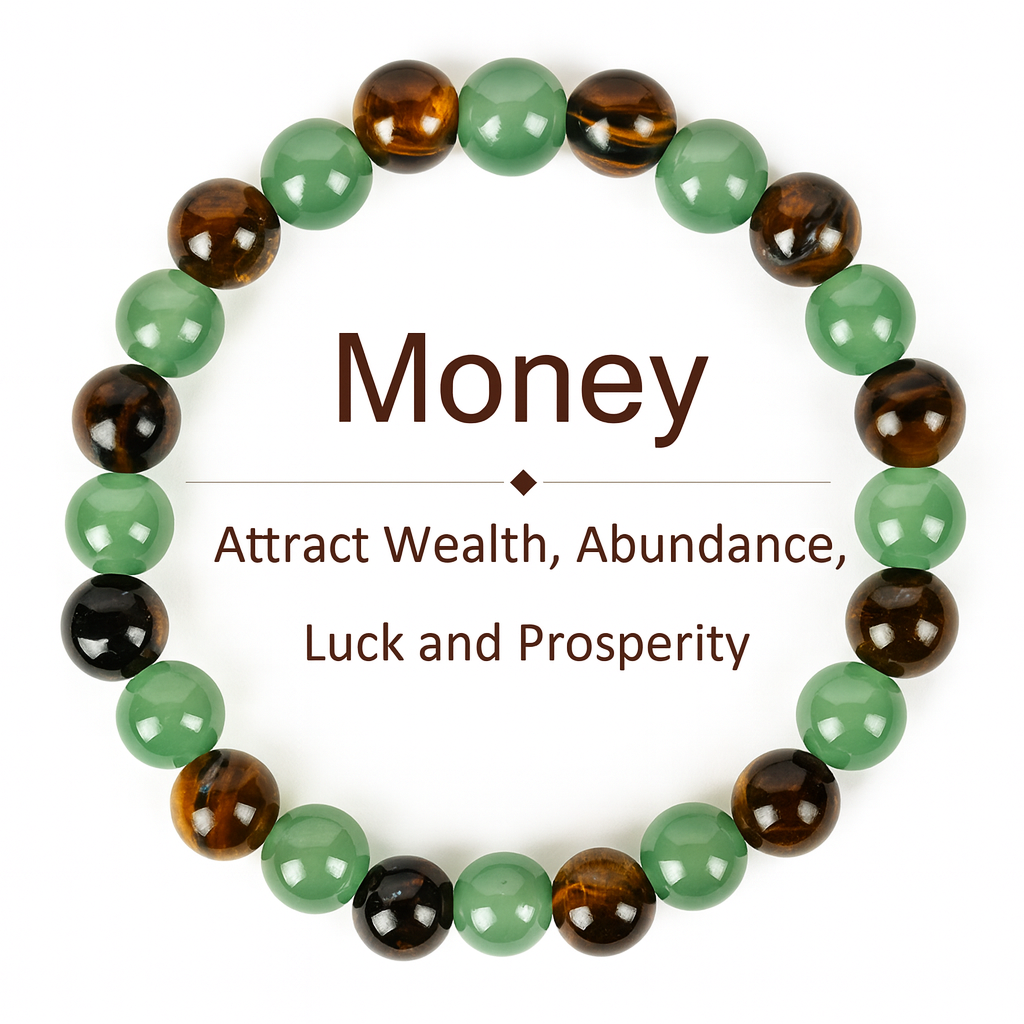 Wearing this bracelet channels powerful energies of wealth, abundance, and luck. The combination of Green Aventurine and Tiger's Eye helps align you with financial prosperity while enhancing your confidence and stability in pursuing your goals.
